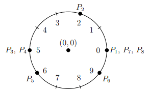 - Points 1 to C-1: the counterclockwise arc length from point 0 to the point itself exactly equals its own number
